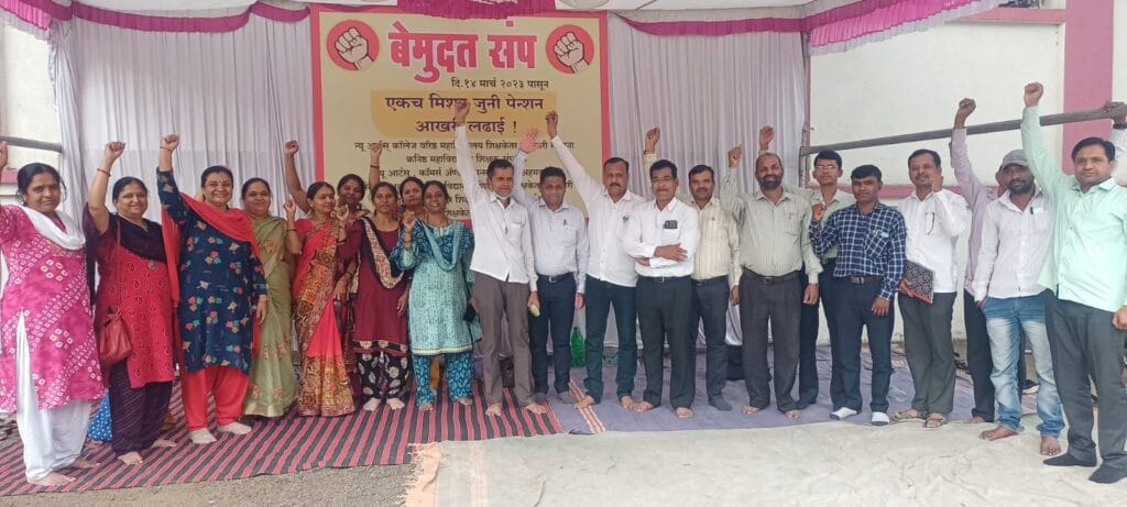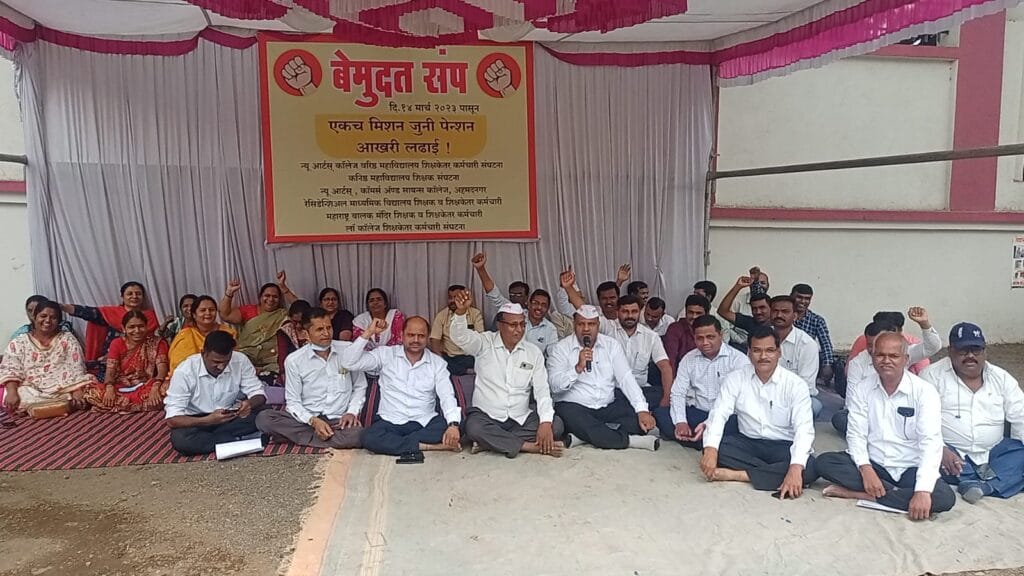 यावेळी प्रा. विलास वाळुंजकर प्रा.राजेंद्र जाधव, प्रा. संजय जाजगे, प्रा.आप्पासाहेब पोमणे,प्रा.मोहन कांजवणे,प्रा.भाऊराव नाडेकर, प्रा. अर्चना काळे, प्रा. आरती साबळे, प्रा. दिपाली रक्ताटे, प्रा.प्रतिभा पवार,प्रा.प्रतिमा शेळके,प्रा.अनिता चव्हाण, महाराष्ट्र बालक मंदिर शाळेचे मुख्याध्यापक सुरेश शेवाळे, नितीन कराळे, , संतोष कानडे, रविंद्र वर्पे, सिताराम मुळे, यांच्यासह अनेक शिक्षक व शिक्षकेतर कर्मचारी यांनी सहभाग घेतला आहे. जोपर्यंत जुनी पेन्शन योजना लागू होत नाही तोपर्यंत आंदोलन सुरूच राहणार आहे.