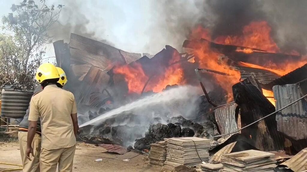 गजराजनगर जवळ गादी कारखाना आगीत भस्म नगरसेवक सुनिल त्र्यंबके यांनी तत्परता दाखवल्यामुळे वाचला अनेकांचा जीव