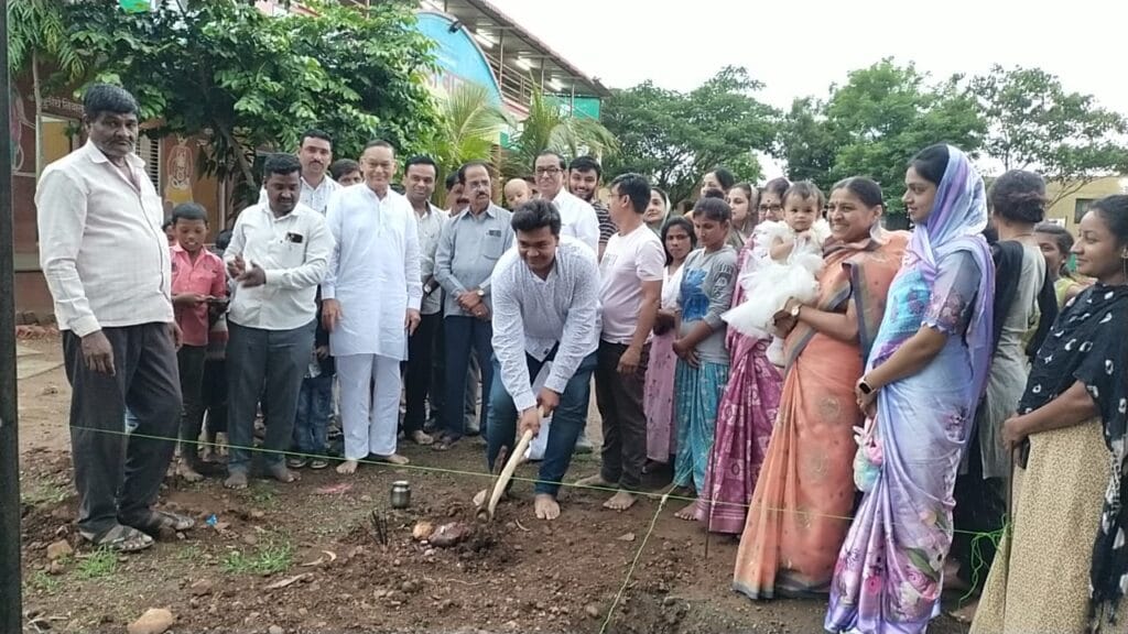 • दोन खोल्यांच्या कामाचे भूमिपूजन करतांना आकाश बाफना