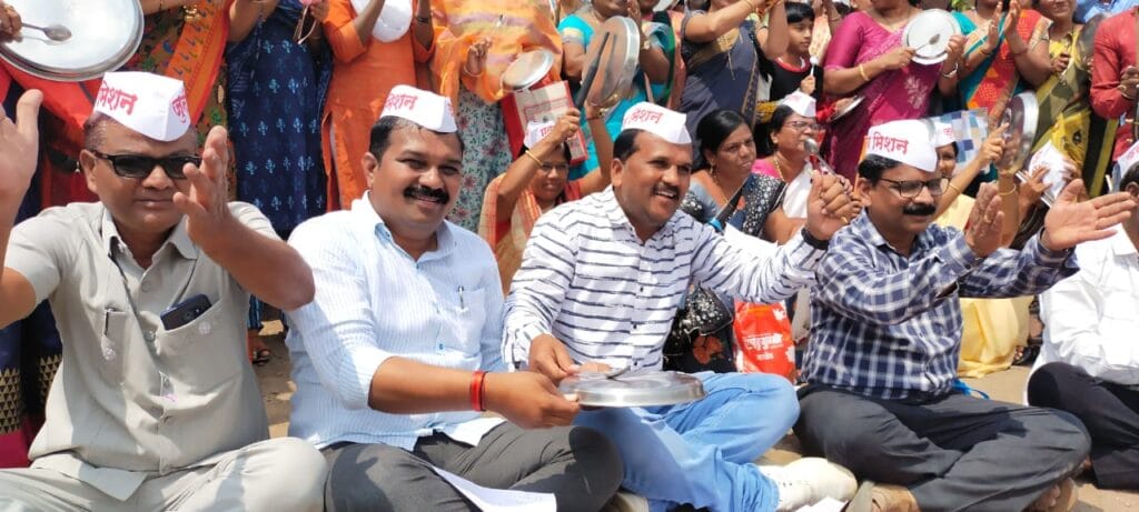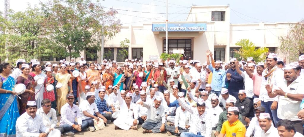 जामखेड शहरातील तहसिल कार्यालयच्या प्रागणात शासकीय,निमशासकीय शिक्षक व शिक्षकेत सर्व कर्मचाऱ्यांचा जुनी पेन्शनसाठी जामखेड मध्ये तहसील कार्यालयावर थाळीनाद आंदोलन करण्यात आले.