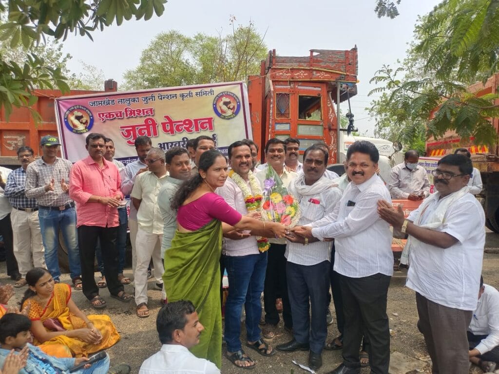 राज्यामध्ये शासकीय,निमशासकीय, शिक्षक व शिक्षकेतर सर्व कर्मचारी यांनी १४ मार्चपासून बेमुदत संप पुकारला असून या संपाच्या अनुशंगाने जामखेड तालुका कर्मचारी कृती समितीची कार्यकारणी जाहीर करण्यात आली. हा संप संपूर्ण महाराष्ट्र भर असून आज जामखेड येथे तहसिल कार्यालय येथे “एकच मिशन जुनी पेन्शन, जुनी पेन्शन हा कर्मचाऱ्यांचा जन्म सिद्ध हक्क आहे आणि तो आम्ही मिळवणारच , कोण म्हणता देत नाही घेतल्याशिवाय राहत नाही, अशी ग्वाही यावेळी जामखेड तालुका कर्मचारी कृती समितीचे अध्यक्ष युवराज पाटील यांनी दिली.