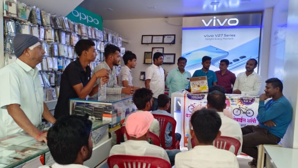 यावेळी महाराष्ट्र नवनिर्माण सेनेचे तालुकाप्रमुख प्रदीप टापरे, आष्टेकर मोबाईल शाॅपी चे संचालक सागर आष्टेकर ,बजाज फायनान्स चे मॅनेजर निखिल नरोडे, रोहित बारस्कर , किशोर रोकडे, अजिंक्य मुरुमकर, अनिकेत अंदुरे,नामदेव भोसले, गोविंद सुतार, आदी ग्राहक मोठ्या संख्येत उपस्थित होते.