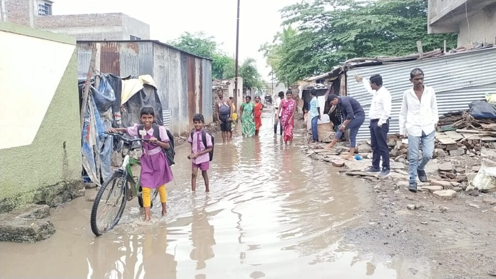 तळ्याचे रुप आले असून तेथील नागरिकांच्या घरामध्ये पाणी शिरले आहे.पावसाळ्याचे दिवस असून त्याठिकाणी पावसाचे पाणी साठत आहे. हे पाणी दूषित असून हे घरात नागरिकांच्या घरात जात असल्याने तेथील नागरिकांचे आरोग्य धोक्यात येताना पाहायला मिळत आहे. हे दूषित पाणी घरात शिरल्यामुळे घरातील लहान मुले- वयस्कर मंडळी यांना साथीचे आजार होऊ शकतात, याला सर्वस्वी जबाबदार हे , जामखेड नगरपरिषद असणार असल्याचे नागरिकांचे म्हणणे आहे .