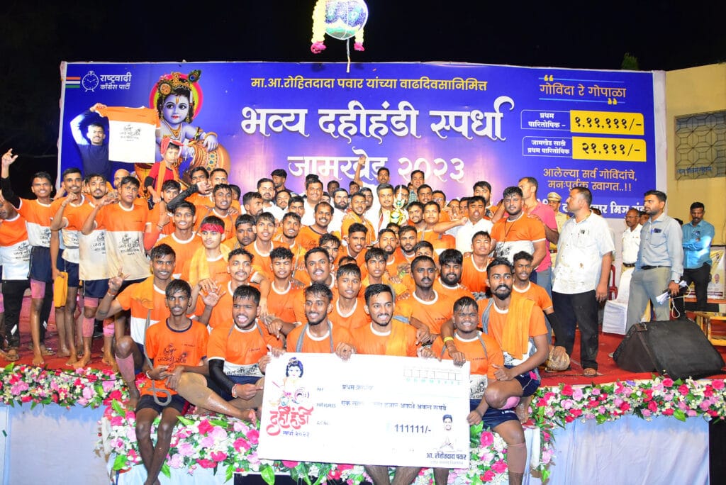 अत्यंत उत्साहात जय श्रीराम बाल गोविंदा पथक या मंडळाने यंदाची नागेश विद्यालयाच्या मैदानावर असलेली हंडी फोडून बक्षिसावर आपलं नाव कोरलं. विजयी झालेल्या कळंबोली (पनवेल) येथील मंडळाला १ लाख ११ हजार १११ रुपये रोख बक्षीस म्हणुन आमदार रोहित पवार यांच्या हस्ते देण्यात आले. तसेच अशाच पद्धतीने मतदारसंघातील मुला मुलींसाठी देखील स्पर्धेचे आयोजन करण्यात आले होते. त्यांनाही आमदार रोहित पवार यांच्या हस्ते बक्षीस देऊन सन्मानित करण्यात आले.