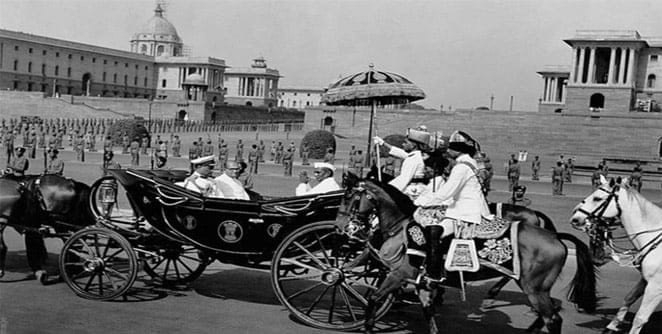 १९५० साली भारत गणराज्य असल्याची घोषणा केली गेली आणि त्याचवेळी पहिली गणतंत्र परेड केली गेली. या परेडमध्ये ३ हजार जवान आणि १०० लढाऊ विमाने सामील झाली होती. तत्कालीन गव्हर्नर सी. राजगोपालाचारी यांनी २६ जानेवारी १९५० या दिवशी सकाळी १० वा.१८ मिनिटांनी भारत गणराज्य बनल्याचे जाहीर केले आणि त्यानंतर सहा मिनिटांनी डॉ. राजेंद्रप्रसाद यांनी देशाचे पहिले राष्ट्रपती म्हणून शपथ घेतली.