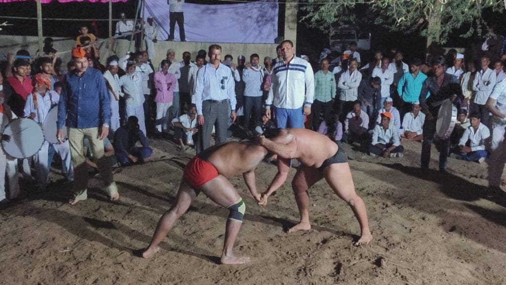 या कुस्त्यासाठी नामवंत मल्लानी हजेरी लावली होती.यावर्षी प्रथमच भव्य दिव्य असे कुस्त्यांचे सामने खेळवले गेले. रात्री उशिरापर्यंत कुस्त्याचा आखाडा रंगला होता. यासाठी हरियाना या राज्यातूनही खेळाडूं उपस्थित झाले होते.