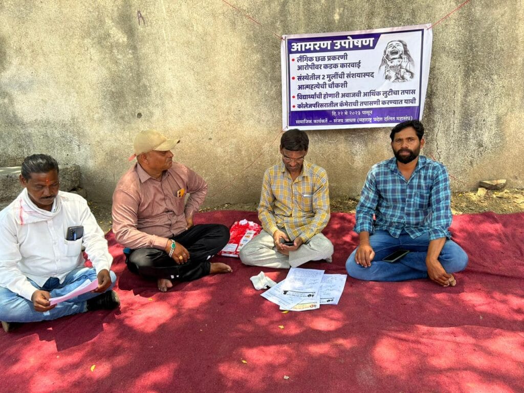 मुलीने दाखल केलेल्या लैगिक शोषण गुन्हा प्रकरणी त्याच्यावर कठोर कारवाई करावी तसेच काॅलेज मधील मुलामुलींची विविध पध्दतीने केलेली पिळवणूक व शासनाची दिशाभूल करून विविध शाखांना मिळविलेल्या परवानग्यांसह संस्थेत चालणाऱ्या गैरप्रकाराची चौकशी करून डॉ. मोरे विरूद्ध कठोर कारवाई करावी यासाठी अहमदनगर जिल्हाधिकारी कार्यालया समोर महाराष्ट्र दलित परिषदे मार्फत संजय जाधव यांनी उपोषण केले