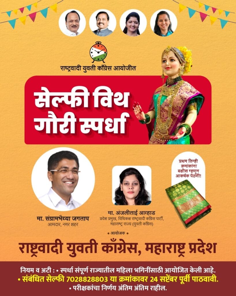 राष्ट्रवादी युवती काँग्रेसच्या वतीने सेल्फी विथ गौरी स्पर्धेचे आयोजन;आकर्षक बक्षिसे