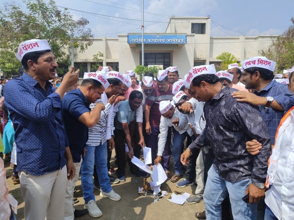आज रोजी संपाच्या पाचव्या दिवशी तहसील कार्यालया प्रगणांत बोंबाबोंब आंदोलन करण्यात आले. यावेळी बोंबाबोंब आंदोलनाने व घोषणांनी सर्व परिसर दणाणून गेला होता. सरकारने दिलेल्या नोटीसांची होळी करत जाहीर निषेध व्यक्त करण्यात केला. यावेळी संपातील कर्मचाऱी म्हणाले की, “जोपर्यंत पेन्शन योजना लागू होत नाही तोपर्यंत कर्मचाऱ्यांच्या वतीने आंदोलन करण्यात येईल तसेच कोणीही नोटिसांना घाबरणार नाही