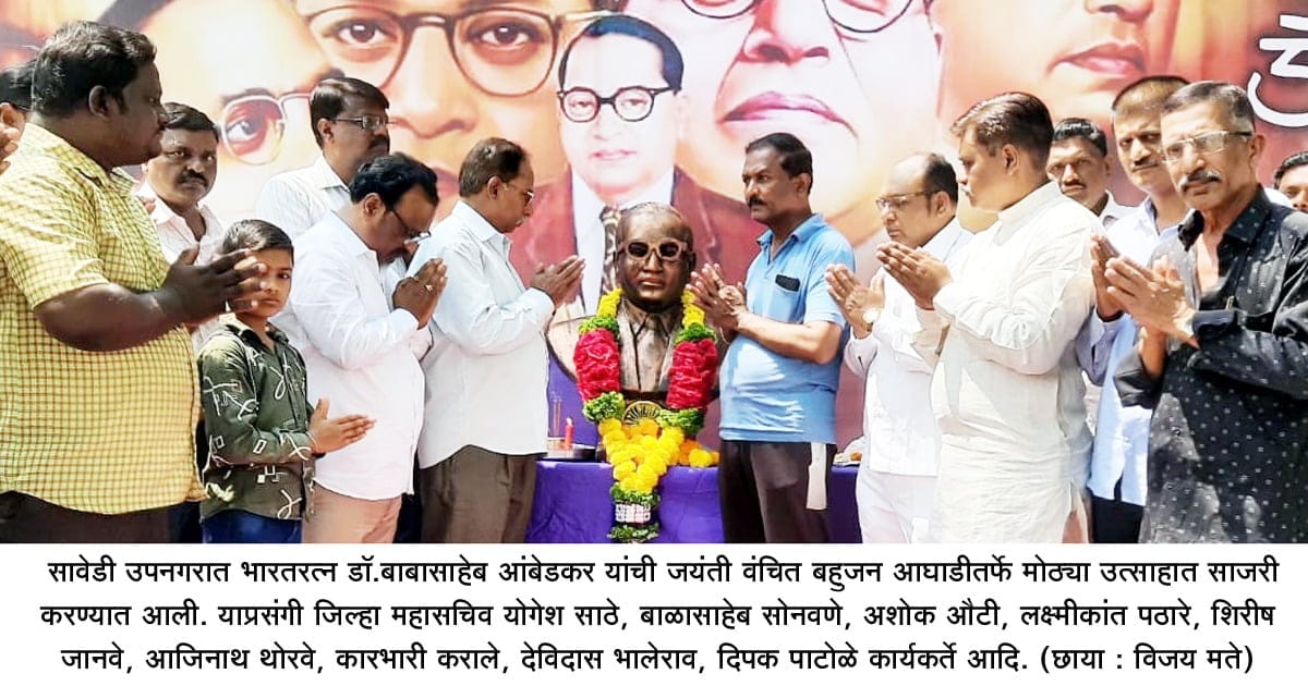 सावेडी उपनगरात गुलमोहोर रोडवर भारतरत्न डॉ.बाबासाहेब आंबेडकर यांची जयंती वंचित बहुजन आघाडी व गुलमोहोर नागरी मंच यांच्या संयुक्त विद्यमाने मोठ्या उत्साहात साजरी करण्यात आला. याप्रसंगी जिल्हा महासचिव योगेश साठे, अॅ्ड. लक्ष्मीकांत पठारे, अशोक औटी, शिरीष जानवे, कारभारी कराळे, माजी जि.प. सदस्य बाळासाहेब सोनवणे, माजी कृषी अधिकारी शिरिष जाधव, अभिजीत मेढे, सावन मकासरे, किशोर वारे, सचिन गायकवाड, अनिल भापकर, बाबुभाई टेलर, शशिकांत दळवी, भाऊसाहेब पानमळकर,प्रमोद आढाव, आजिनाथ थोरवे, प्रकाश दासी, भैय्या काळे, अमोल पानसरे आदि उपस्थित होते. प्रारंभी बौद्धाचार्य दिपक पाटोळे यांनी वंदना म्हटली.