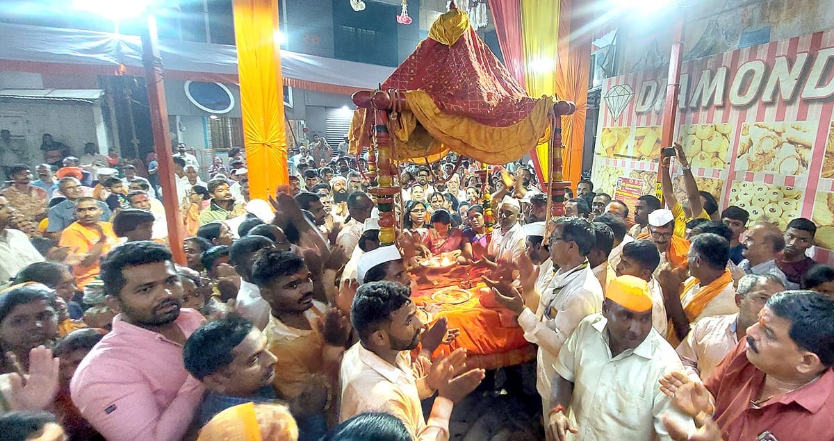 Home » नगर- मधील तुळजाभवानी मातेच्या मंदिराचे पुजारी यांच्या घरी पलंगाचे भव्य स्वागत