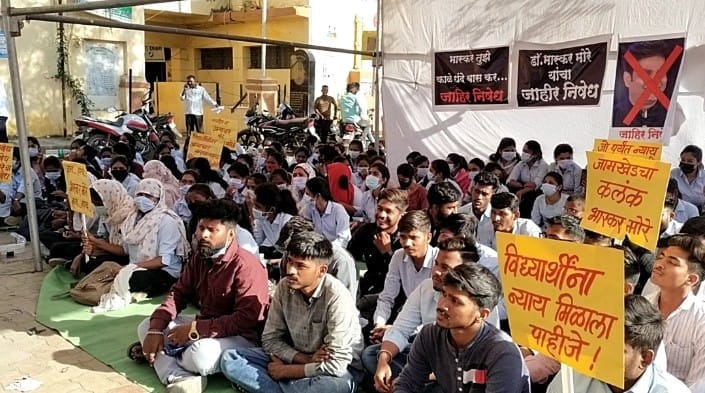 जामखेड तालुक्यातील रत्नापुर परिसरातील रत्नदीप मेडिकल फाउंडेशन ॲण्ड रिसर्च सेंटर चे संस्थापक अध्यक्ष डॉ भास्कर मोरे Dr. bhaskar more हा बी फार्मसी चे शिक्षण घेत असलेले विद्यार्थी व विद्यार्थिनींची आर्थिक मानसिक शारीरिक छळ करत आहे या अन्यायामुळे बी फार्मसी च्या विद्यार्थी व विद्यार्थिनींनी तहसील कार्यालया समोर आमरण उपोषण सुरू केले आहे.सलग तीन दिवसांपासून शेकडो विद्यार्थी हे प्रशासन न्याय मिळवून देईल अशी अपेक्षा बाळगून आहेत.तसेच या आंदोलनात मनसे, राष्ट्रवादी काँग्रेस शरदचंद्र पवार,संभाजी ब्रिगेड,शिवप्रतिष्ठान हिंदुस्तान,रिपब्लिकन पक्ष यांच्या सह अनेक सर्वपक्षीय नेत्यांनी जाहीर पाठिंबा दिला होता. कालपासून तर शिवप्रतिष्ठान हिंदुस्तान व विद्यार्थी उपोषणाला बसले होते.