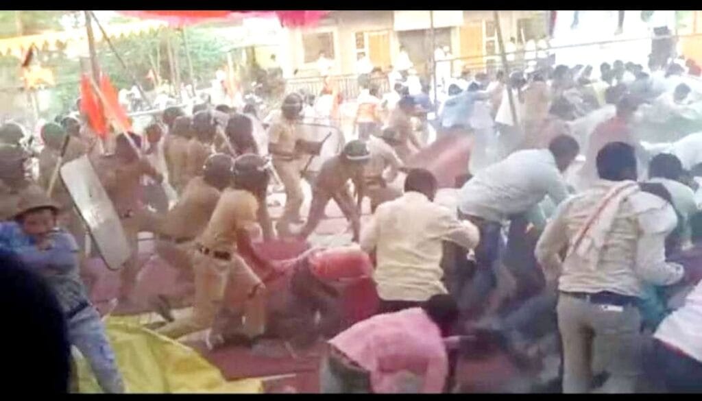 जालन्यात Jalana मराठा आंदोलकांवर पोलिसांनी लाठीचार्ज केल्याचं समोर आलं आहे. अंतरवाली सराटी गावात मराठा आक्रोश मोर्चाचं आरक्षणासाठी उपोषण सुरू होतं. तेव्हा पोलिसांनी लाठीचार्ज केला आहे. यामुळे एकच एक गोंधळ उडाला आहे. तर, गावकऱ्यांनी पोलिसांवर दगडफेक केल्याचा दावा करण्यात येत आहे. या घटनेचे तीव्र पडसाद उमटण्याची शक्यता आहे. या घटनेनंतर राज्यात तणावाची परिस्थिती निर्माण होण्याची भिती आहे.