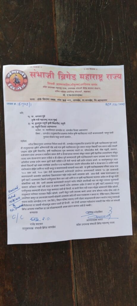 आज रोजी चक्क पावसाळ्यात या कृषी महािद्यालयाला टँकरने पाणीपुरवठा केला जात आहे आणि या वर कृषी महाविद्यालयं चालणार असेल तर ही खूप मोठी शोकांतिका आहे. येथे पाणी उपलब्ध करण्यासाठी तात्पुरते पर्याय शोधले असतीलही मात्र त्या मधुन समस्या सुटण्याची शक्यता अजिबात नाही तरी यावर जे कायम स्वरुपी पर्याय आवश्यक आहेत ते करून या कृषी महािद्यालयाला भरपूर पाणीपुरवठा करण्याची योजना मंजूर करण्यात यावी ही विनंती. या साठी सिना नदी पात्रात मोठ्या आकाराची विहिर खोदणे , तालुक्यात सतेफळ तलावात विहीर खोदणे, उजनी येथून पाणी उपलब्ध करणे अथवा अन्य कोणता पर्याय योग्य आहे