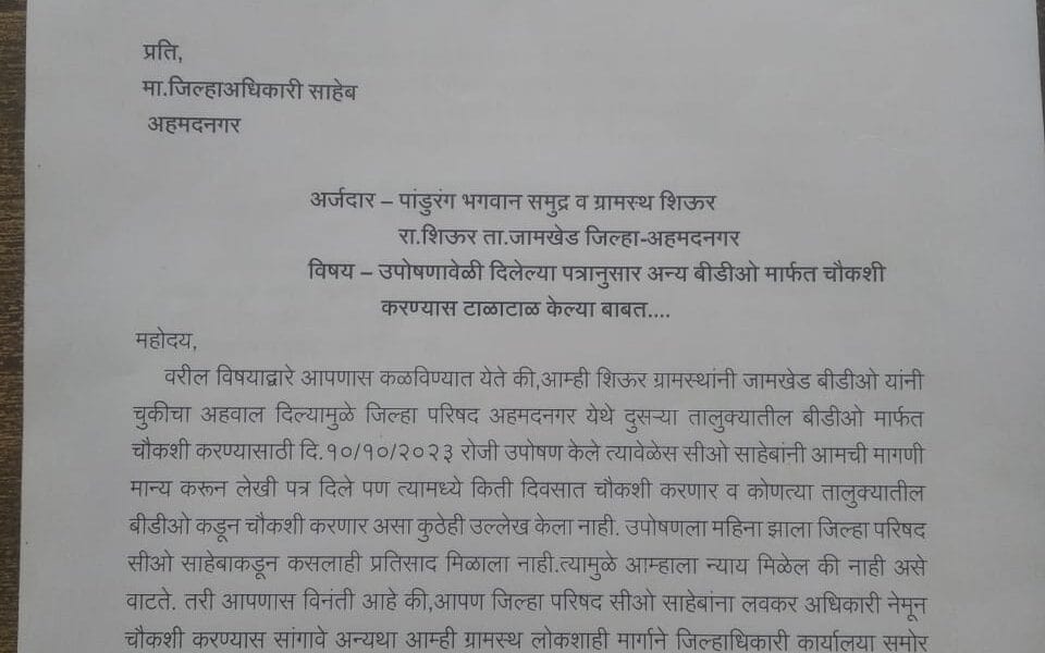Jamkhed News| जामखेड तालुक्यातील शिऊर येथील ग्रामस्थ आमरण उपोषणला बसणार; गटविकास अधिकाऱ्याच्या कामाच्या चौकशीत दिरंगाई.!