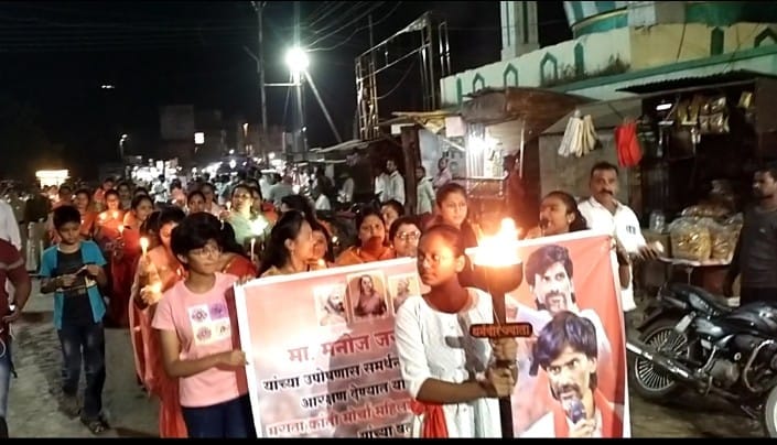 या कॅन्डल मार्च मध्ये हजारो महीलांनी हातात मेन बत्ती पेटवून शहरातुन कॅन्डल मार्च काढत मराठा आरक्षणाच्या घोषणा दिल्या.