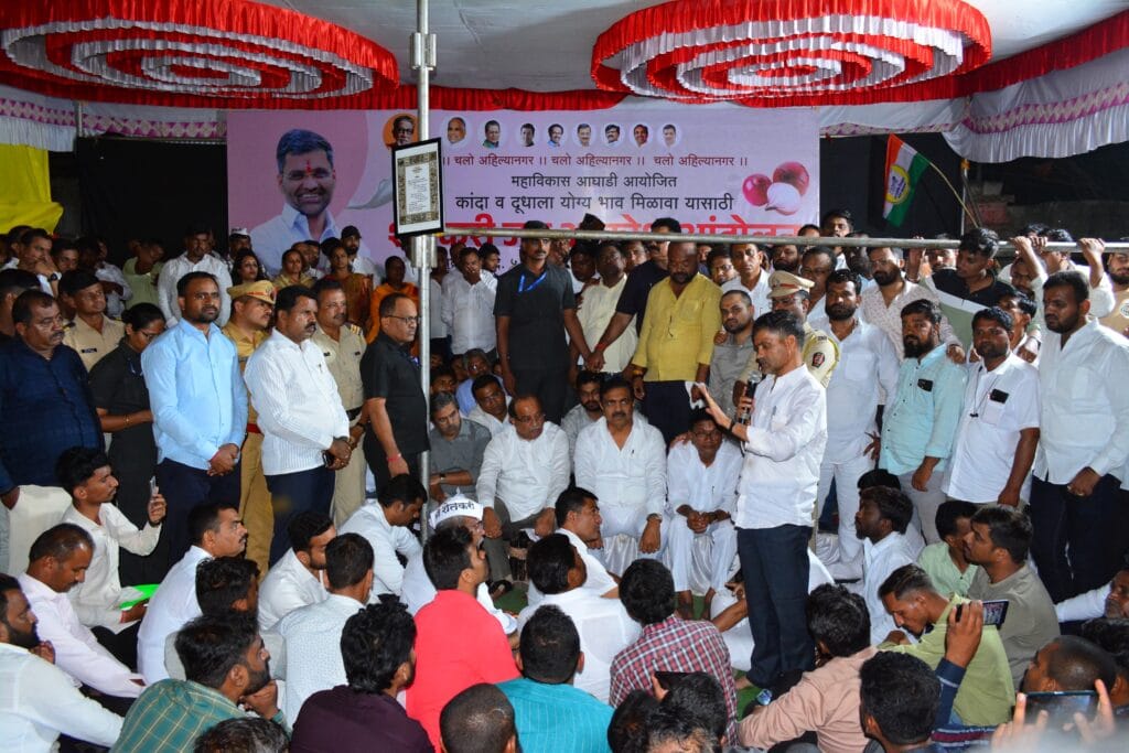खासदार नीलेश लंके Nilesh lanke यांच्या नेतृत्त्वाखाली जिल्हाधिकारी कार्यालयासमोर जनआक्रोश आंदोलन सुरू होते. आंदोलकांनी पालकमंत्री तथा दुग्धविकास मंत्री राधाकृष्ण विखे – पाटील यांनी हमीभावाचे आश्वासन द्यावे, अशी मागणी केली होती.