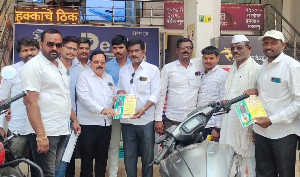 राष्ट्रीय समाज पक्षाच्या वतीने राष्ट्रीय अध्यक्ष महादेव जानकर यांच्या मार्गदर्शनाखाली राज्यात “हर हर महादेव ,घर घर महादेव’ हे संपर्क व जागृती अभियान राबवून नागरिकांना पत्रके वाटण्यात आले. jamkhed जामखेड शहरातील छत्रपती शिवाजी महाराज पेठ,बिड रोड, कोर्ट रोड, तपनेश्वर रोड,बाजारतळ, खर्डा चौक येथे या अभियानास सुरवात करण्यात आली.शहरात या अभियानास नागरिकांचा उत्स्फूर्त प्रतिसाद मिळाला. यावेळी युवा जिल्हा अध्यक्ष विकास मासाळ, तालुका अध्यक्ष डॉ. प्रकाश कारंडे, भानुदास हाके (मेजर), सदाशिव हजारे (वस्ताद), मोहन कारंडे(वकील) , सर्जेराव पाटील (उपसरपंच,बाळगव्हाण) , युवक तालुका अध्यक्ष पै.नंदकिशोर खरात, सोनू भिसे (युवा नेते),शाम म्हेत्रे आदी पदाधिकारी उपस्थित होते.