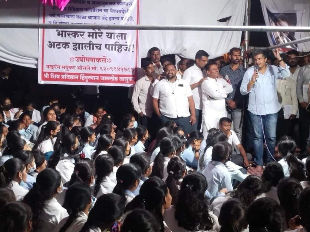 आम्ही मागिलवेळी पाच मुलींनी पोलीस स्टेशनला तक्रारी अर्ज दिले मात्र पोलिसांना दिलेले तक्रारी अर्ज पोलिसांकडून डॉ भास्कर मोरे कडे गेले. त्यातक्रारी अर्जावरून त्याने कॉलेजच्या मुलींना खुप टाॅर्चेर केले. जिथे पोलिसाकडुनच सुरक्षिततेच्या बाबी संभाळल्या जात नाहीत. तिथे आम्ही मुली कशा थांबणार. आम्हाला हे मेडिकल कॉलेज सुरक्षित वाटत नाही. कॉलेजमध्ये कसलाही आभ्यासक्रम शिकवला जात नाही. कॉलेज तपासणीसाठी विद्यापिठाची समिती आल्यावर आम्हांला रुग्ण बनवुन सलाईन लावले जाते, मग न शिकवता डिग्री अशीही भेटणार आहे. फक्त पैसे भरा व मोकळे व्हा असे भास्कर मोरे मूलींना सांगतो. अन् सांगितले ते नाही केले तर ,असं सांगतांना अक्षरश मूलींना रडू कोसळले. त्यामुळे उपस्थितांचेही डोळे पानावले.
