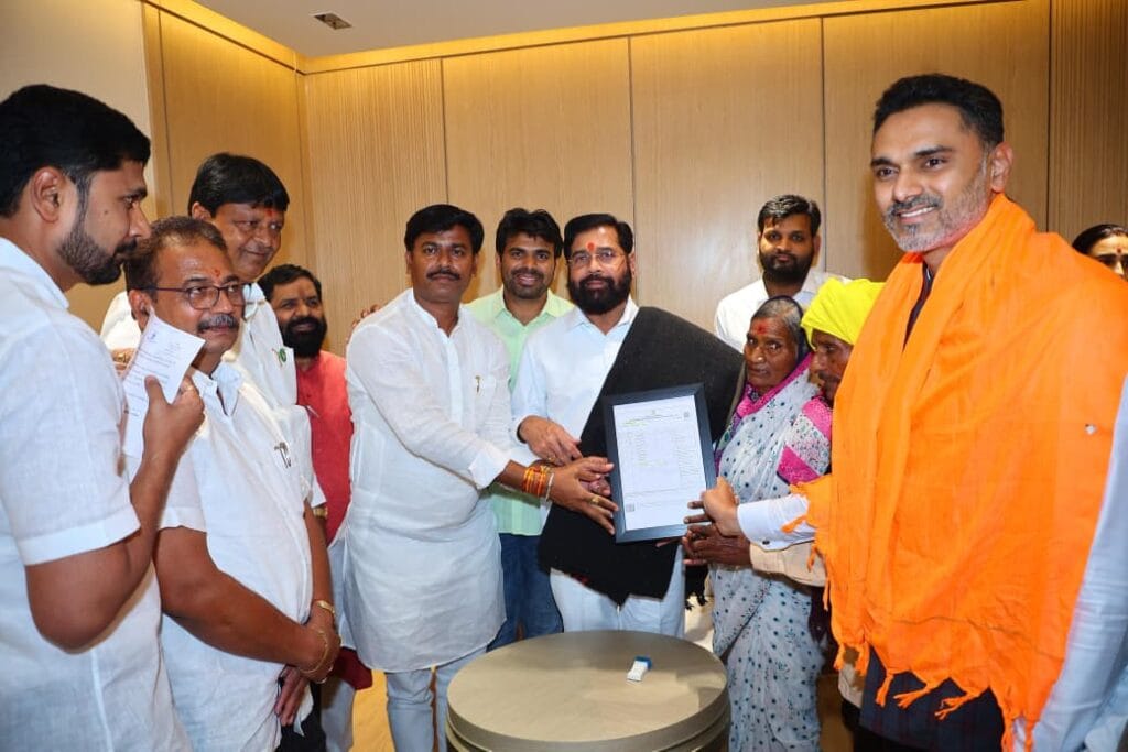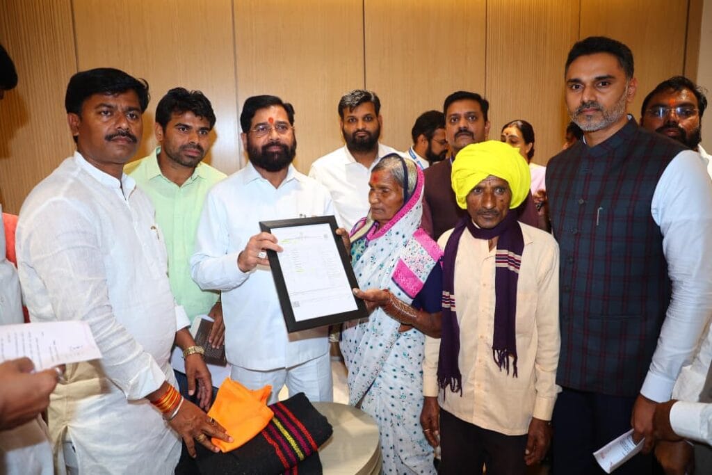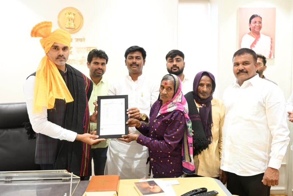 यावेळी कौसाबाई सरोदे, सूर्यभान सरोदे व त्यांचे परिवार,सरपंच शरद पवार,चंद्रकांत पवार,अभिषेक कदम,युवराज हजारे.किरण मोरे आदि मंत्रालय मुंबई येथे उपस्थीत होते.