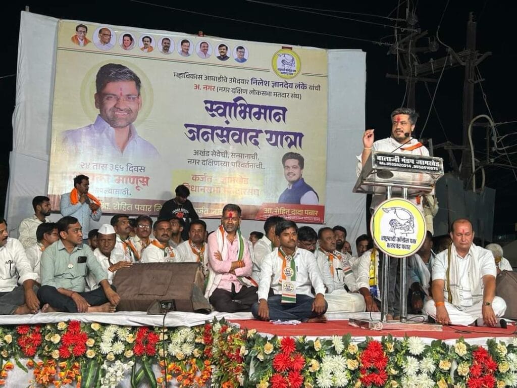 राष्ट्रवादी शरद पवार गटाचे उमेद्वार मा. आमदार निलेश लंके यांची जामखेड तालुक्यामध्ये स्वाभिमान जनसंवाद यात्रा सुरू आहे. यावेळी लंके यांनी खा.सुजय विखे यांचा नामोल्लेख टाळत टिका केली की, गणेश सहकारी साखर कारखाना, डाॅ.तनपुरे सहकारी साखर कारखाना यांनी बंद पाडला.
