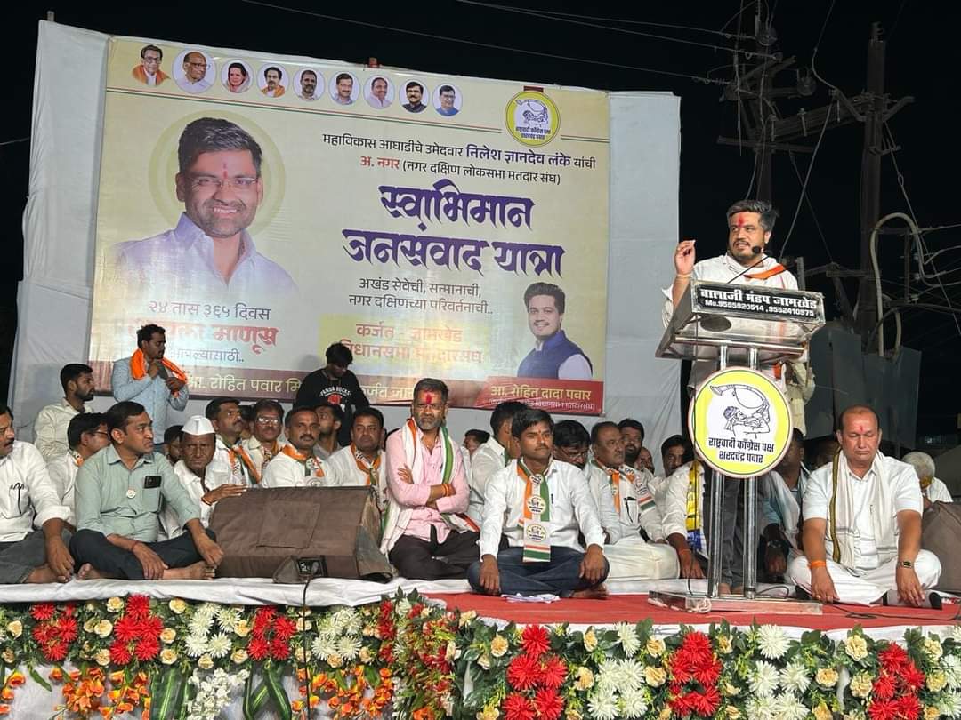 यावेळी बोलतांना आमदार रोहित पवार यांनी सुद्धा विखेंचा चांगला समाचार घेतला यावेळी त्यांनी असे सांगितले की, सोशल मीडियावर जे दिसते आणि प्रत्यक्ष जे दिसते यामध्ये खूप फरक असतो , निलेश लंके यांना विविध तालुक्यातुन जो लोकांचा प्रतिसाद मिळत आहे. यावरून लंके हे २ ते २. ५० लाख मतांनी नक्की विजयी होतील असे चित्र आहे. आणि जामखेड तालुक्यातून लंकेना नक्कीच लीड मिळणार आहे