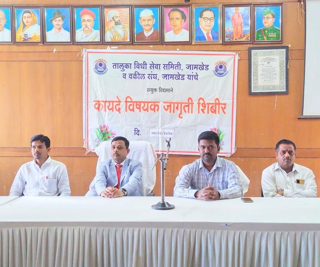 कायद्यापुढे सर्व नागरिक समान असून स्त्री-पुरुष भेदभाव केला जात नाही. महिला सक्षमीकरणासाठी कायदा महिलांच्या पाठीशी खंबीरपणे उभा असेल असे प्रतिपादन जामखेड तालुका प्रथम वर्ग व दिवाणी न्यायाधीश वैभव जोशी यांनी केले. ते महिला दिनानिमित्त Women’s Day तालुका विधी सेवा समिती व वकील संघ यांनी आयोजित केलेल्या शिबिरात बोलत होते. श्री. जोशी पुढे म्हणाले की कायद्याने सर्व महिला पुरुष समान असून समाजाने आपली मानसिकता बदलली पाहिजे. स्त्रिया कोणत्याही क्षेत्रामध्ये कमी नसून आज आपल्या बुद्धिमत्तेच्या जोरावर यशाची शिखरे पादाक्रांत करत आहेत.